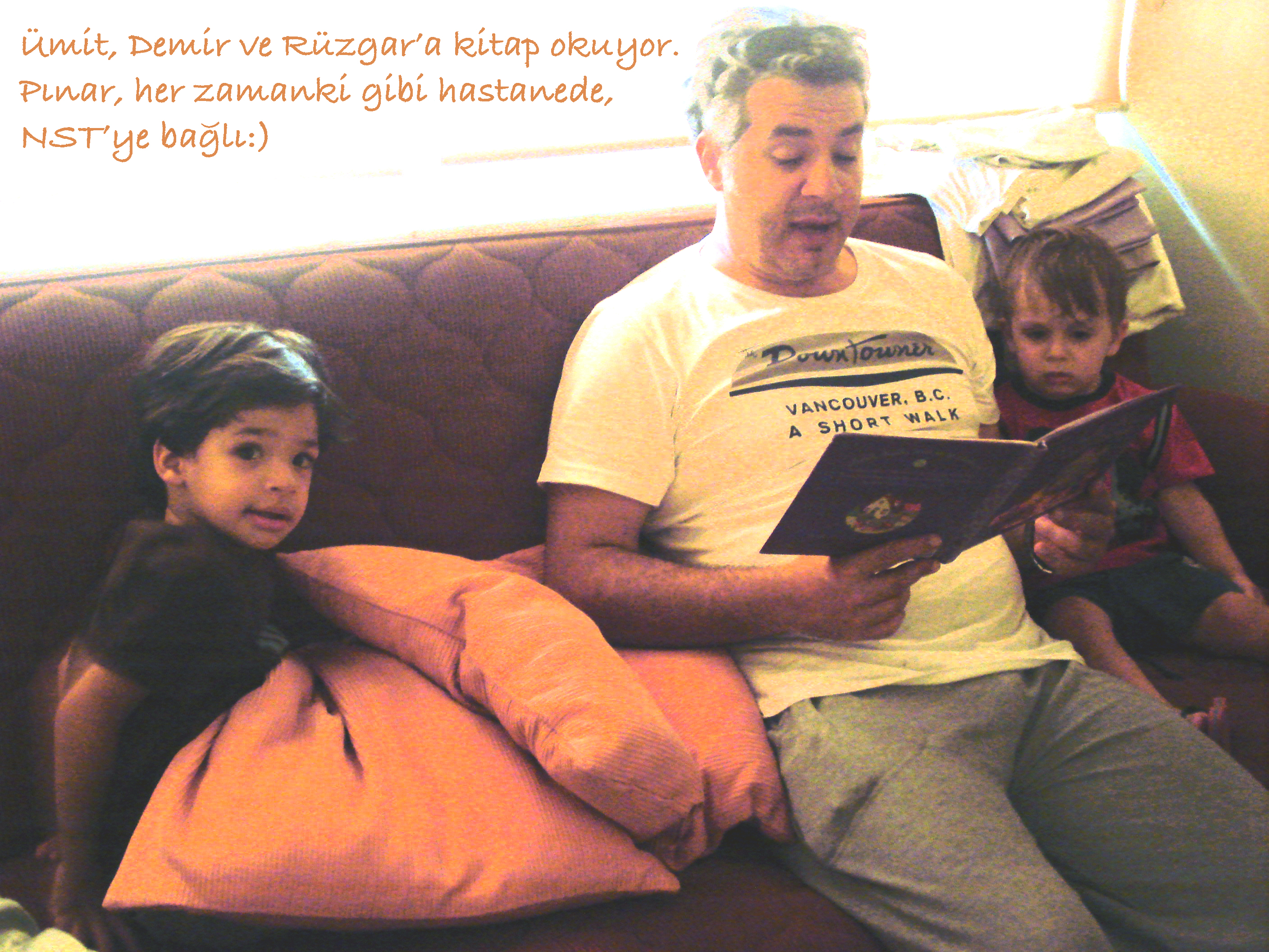 Görkem, Ümit Abi ve tabii ki Rüzgar- Kaç kere benim yalancı doğum sancılarım yüzünden Demirim’e bakmak zorunda kaldınız?? Zehirlenme maceramı da unutmamak lazim tabi! 5 Temmuz’da Ümit Abi kocamdan bi telefon aldı. Ona telefonda ağlayarak, hic bir şey anlamadığından hastaneye gelip  olan biteni tercüme etmesi icin yalvarıyordu. Ümit Abi yüzlerce kilometre uzakta olmasına rağmen fırtına gibi yetişti.. yarım saatte hastanedeydi…