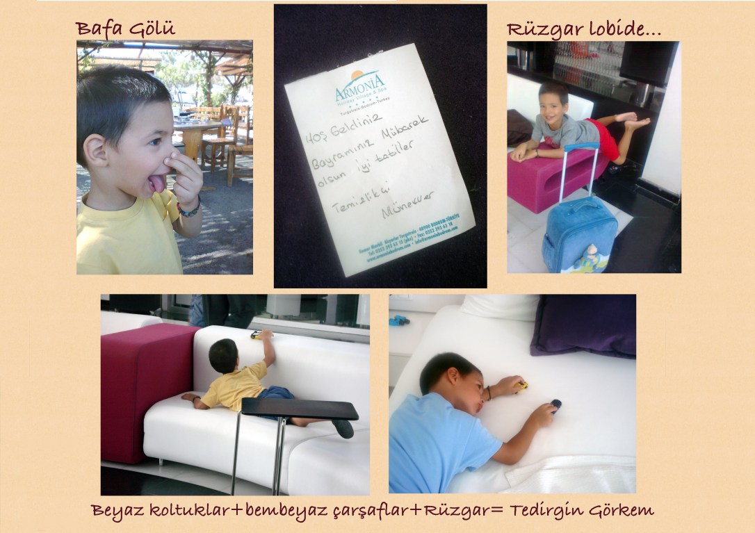 Tüten’e de yazdığım gibi, her şeye hazırlıklıydım bu defa, hayaller kurmadım, çıkan rezaletlere gözümü-kulağımı tıkadım, keman yayı misali gerilip o gerginlikle bir de kocamla bozuşmaktansa, tam Yiğit Karaahmet’i (Yiğit Bey için bkz: https://ruzgarligunlervegeceler.wordpress.com/2011/05/30/zxcvbnmc-jghjuuop/) sinir edecek tipte, umursamaz ve sorumsuz anne rolüne büründüm beş gün için 🙂 İyi ki de öyle yapmışım diyorum şimdi.
