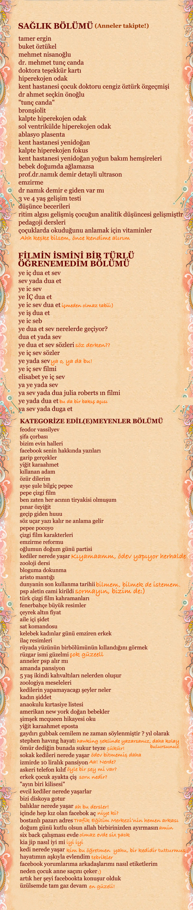 10. bloggerda yok sanırım bu anahtar kelimeler özelliği ama şu kategorize edilemeyenler çok komikmiş..